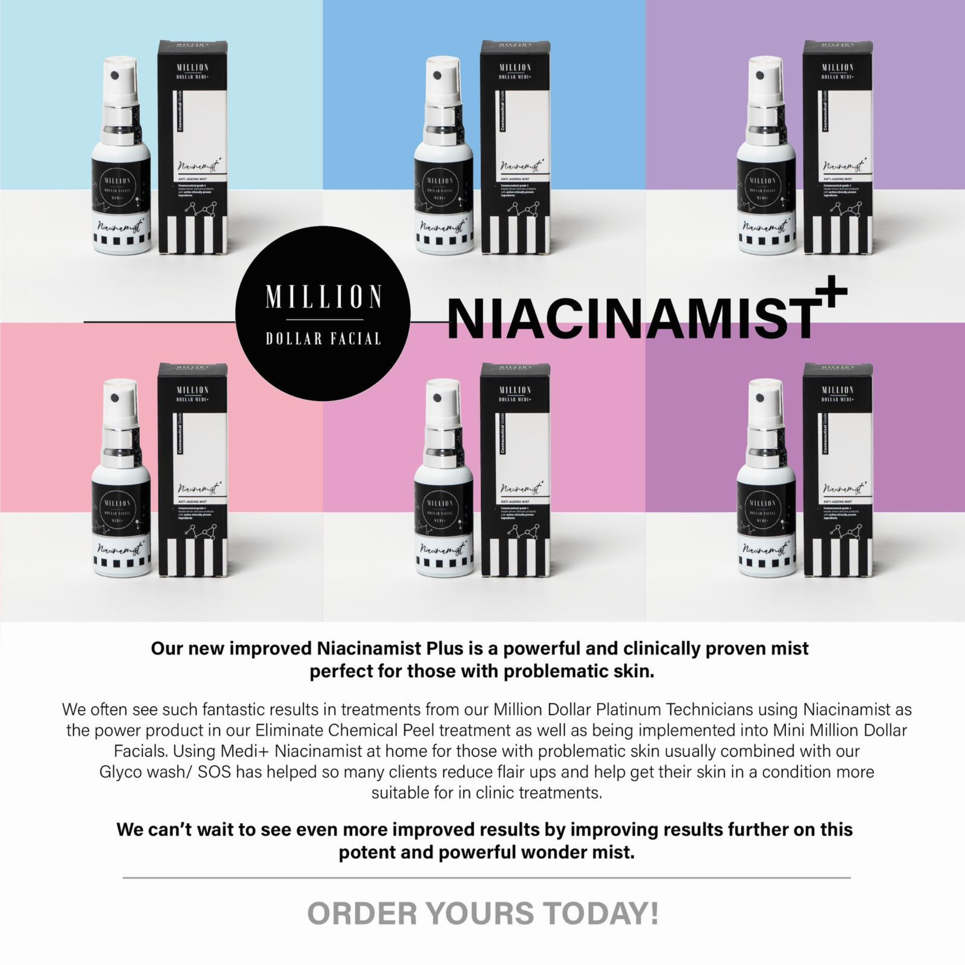 Niacinamist+ is suitable for daily use and ideal for clients looking to refine skin texture, calm breakouts, improve redness and support youthful-looking skin.
