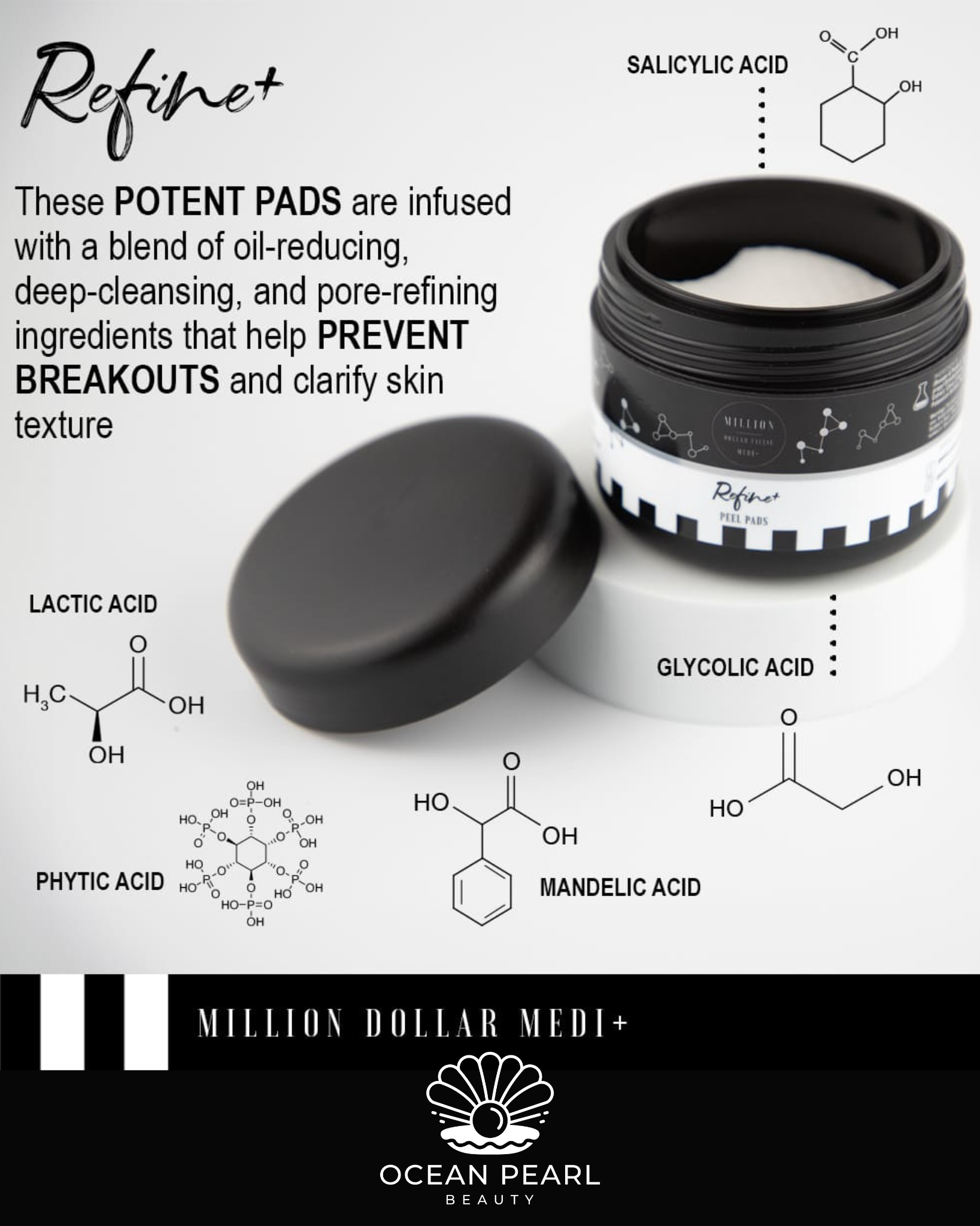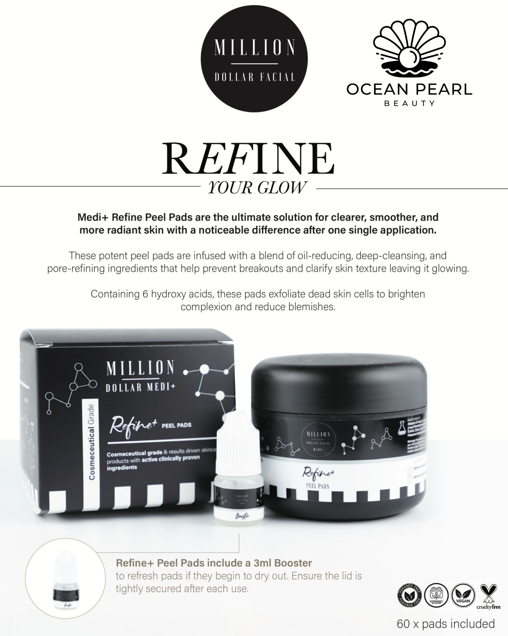 Medi+ Refine Peel Pads are the ultimate solution for clearer, smoother, and more radiant skin. Targeting pigmentation, dryness, dull and congested skin as these potent pads are infused with a blend of oil reducing, deep cleansing, and pore refining ingredients that help prevent breakouts and clarify skin texture.